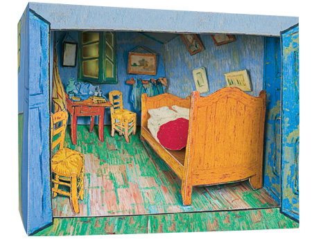 Lastly is a work by my favorite classic painter...Vincent Van Gogh. He only sold one of his paintings in his lifetime, and that one was purchased by his brother, Theo. In France, in 1888, he left Paris for the city of Arles. In was there that he painted one of his best known works: Bedroom in Arles. Here is the normal painting...